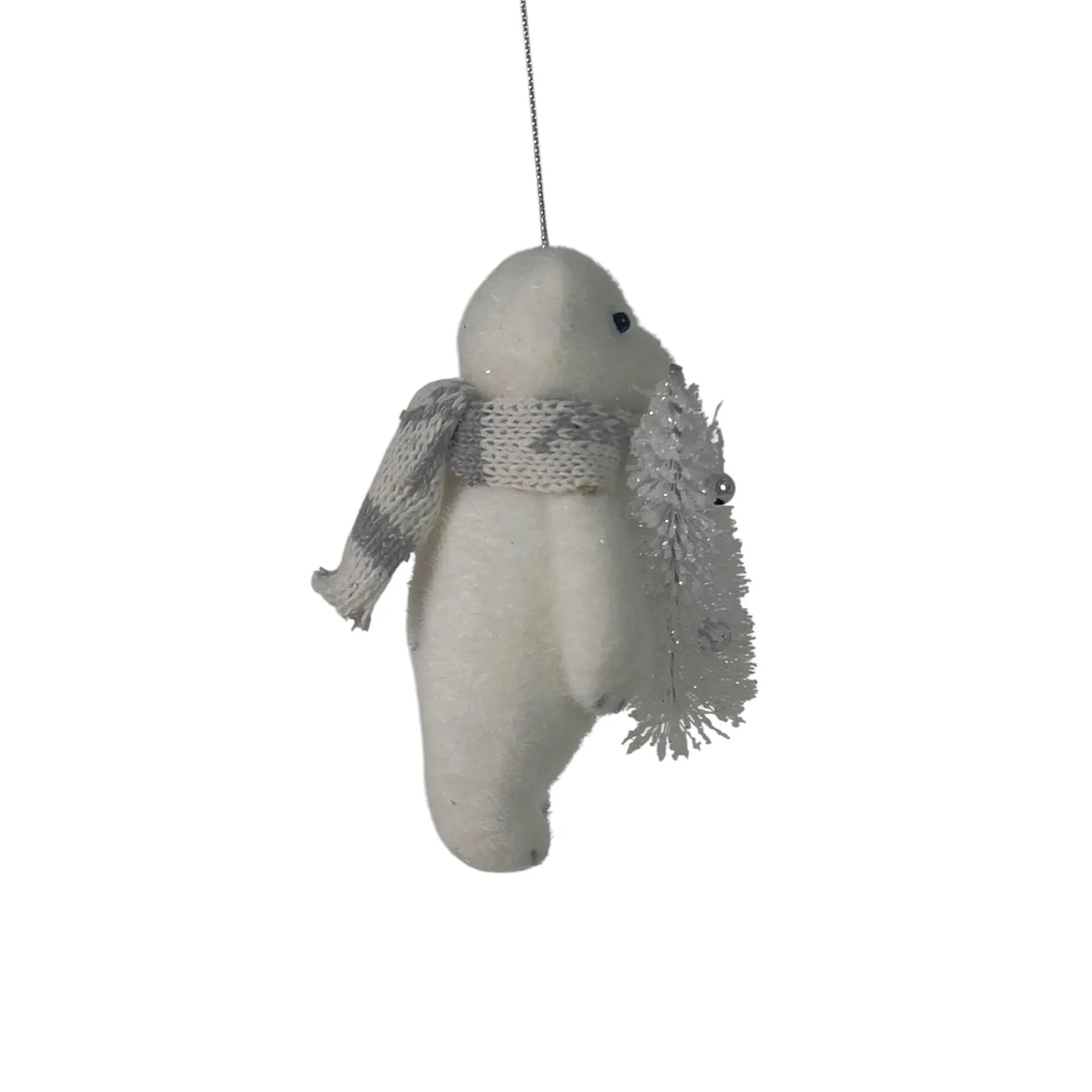 Dale un toque de ternura invernal a tu decoración con este encantador adorno colgante de oso polar, elaborado íntegramente en polifoam blanco de textura suave. Con medidas compactas de 5,5 cm de ancho, 7 cm de profundo, y 12,5 cm de alto, este osito porta una bufanda tejida y sostiene un mini árbol blanco brillante, evocando un ambiente festivo y acogedor. Ideal para colgar en el árbol, guirnaldas o ventanas, es ligero, reutilizable y aporta un toque adorable y temático a cualquier espacio navideño.