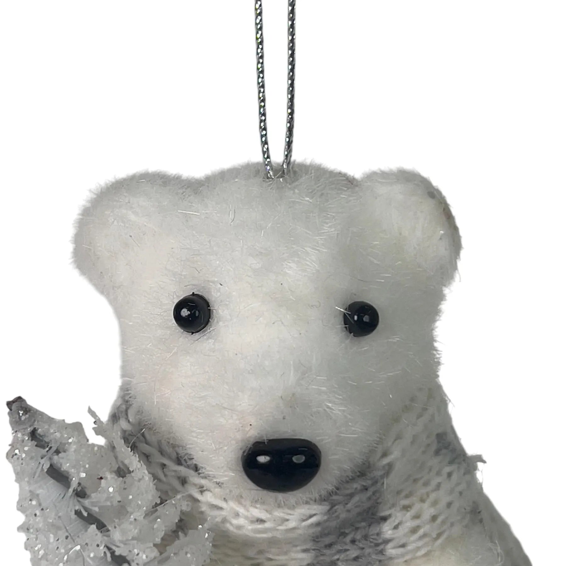 • Diseño: adorable oso polar con bufanda y un pequeño pino decorado, con textura suave, superficie aterciopelada y aspecto delicado.