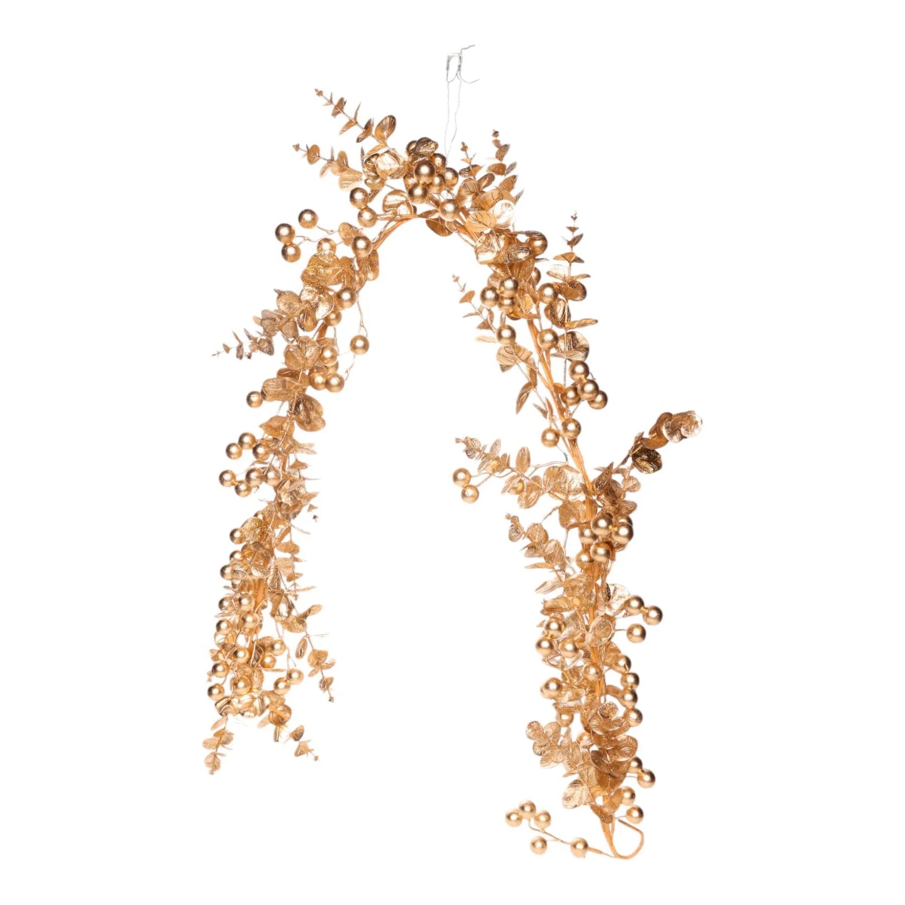 Guirnalda Decorativa Dorada con Esferas y Hojas – 180 cm