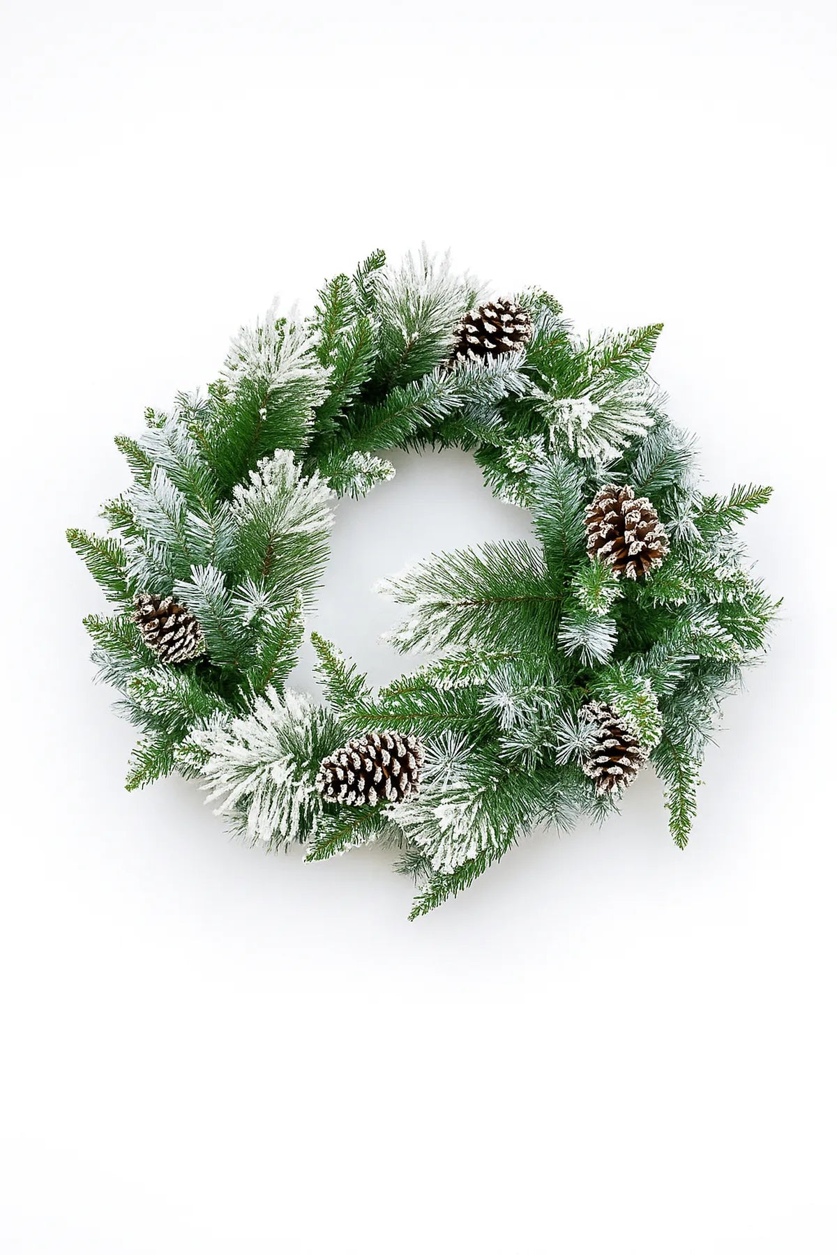 Corona con Puntas Nevadas y Piñas – 60 cm