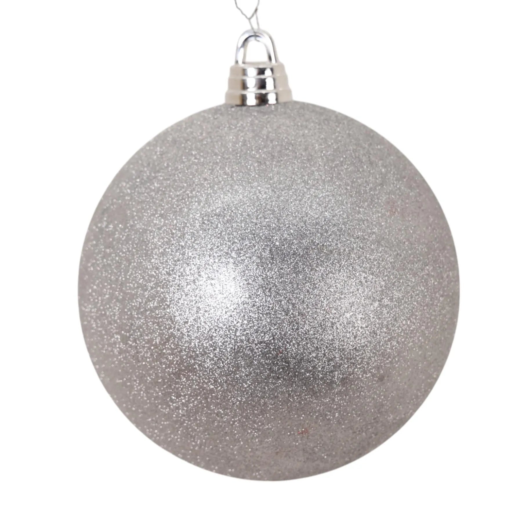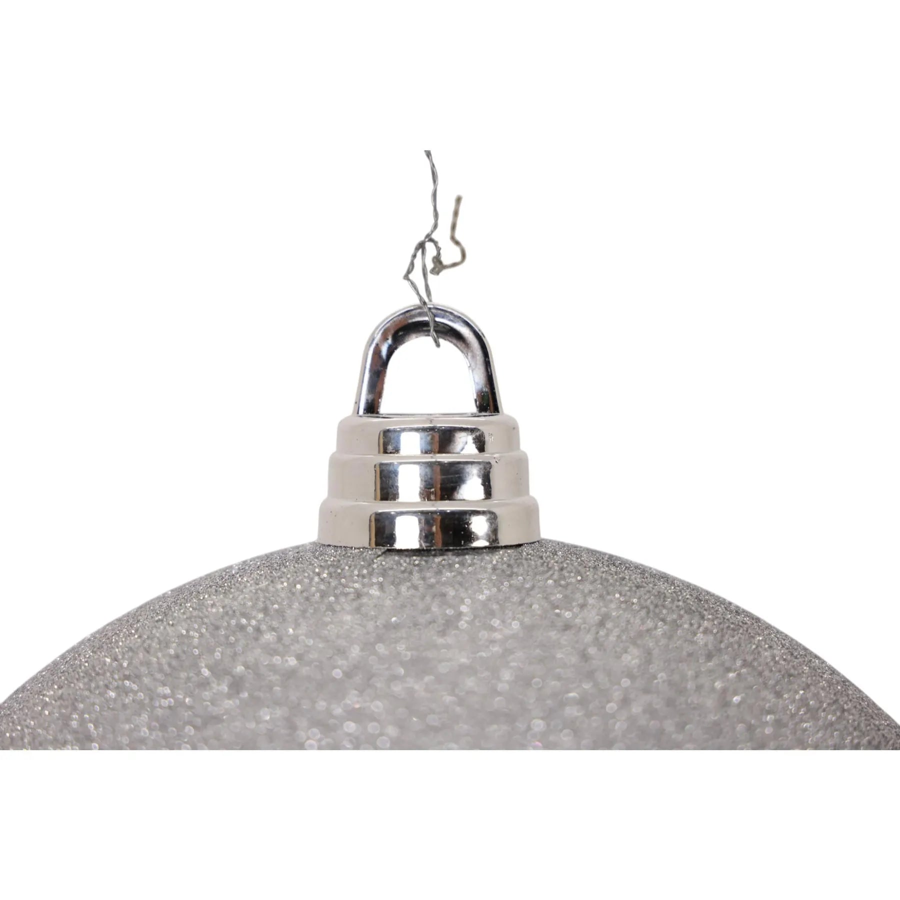 Esfera blanca de acabado diamantado. Su diseño elegante y sutil brillo añaden un toque sofisticado a cualquier ambiente festivo, ya sea en el árbol, centros de mesa o decoraciones colgantes.