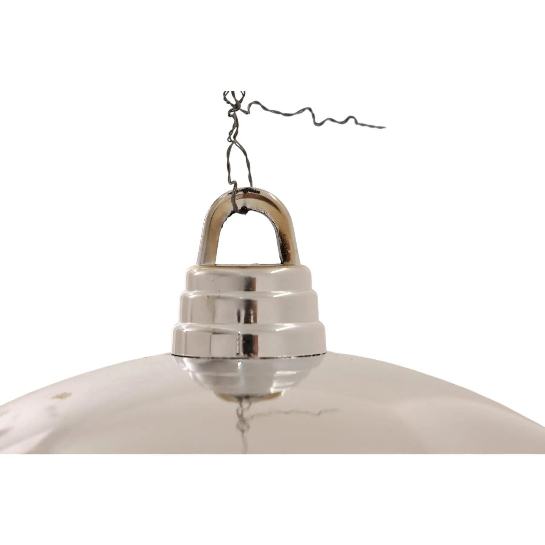 Elegante esfera en acabado espejo color plata. Su diseño sobrio y moderno es ideal para espacios amplios y decoraciones impactantes.