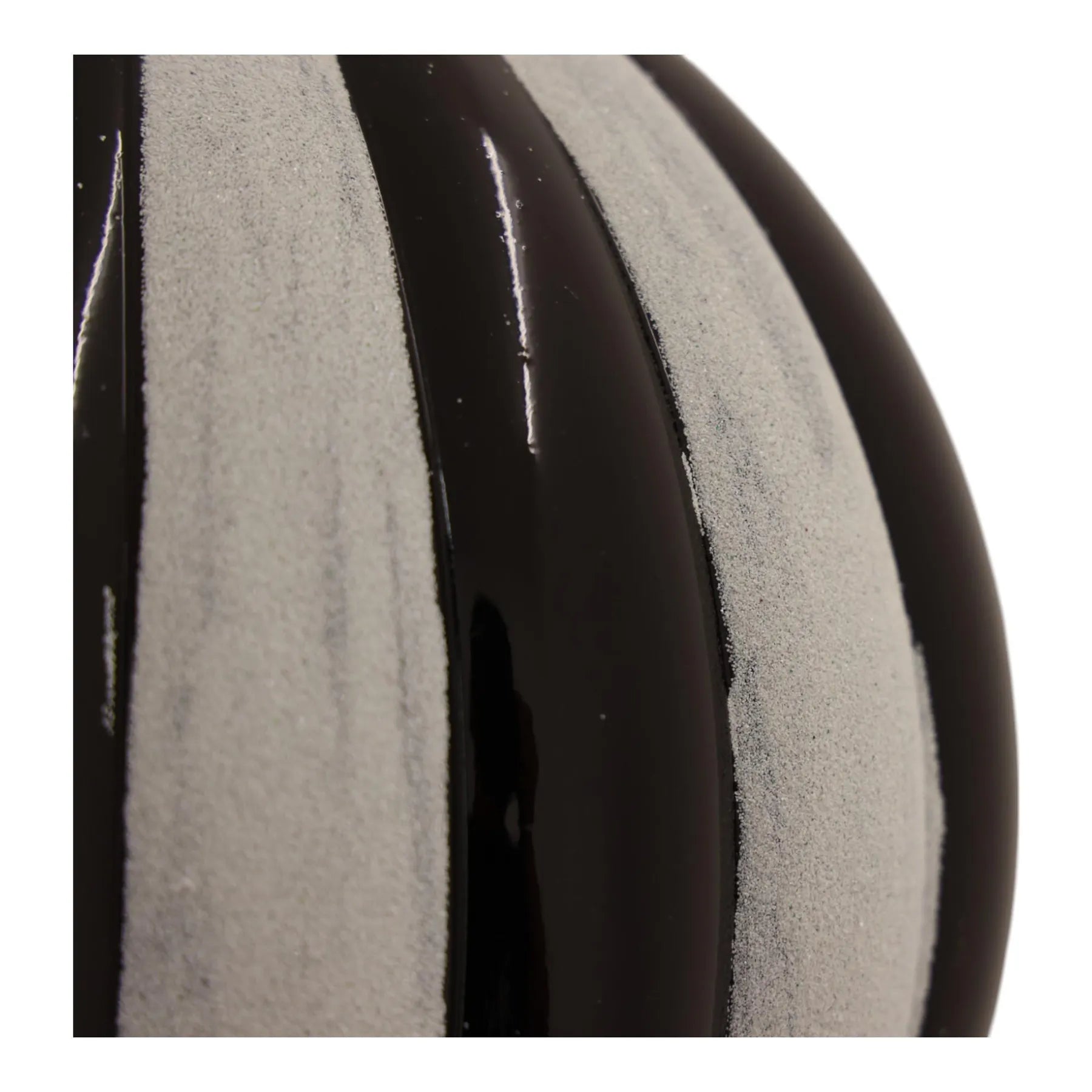 Esfera decorativa de rayas negras y blancas. Inspirada en los tradicionales bastones de caramelo, es perfecta para estilos navideños clásicos, dulces o temáticos.