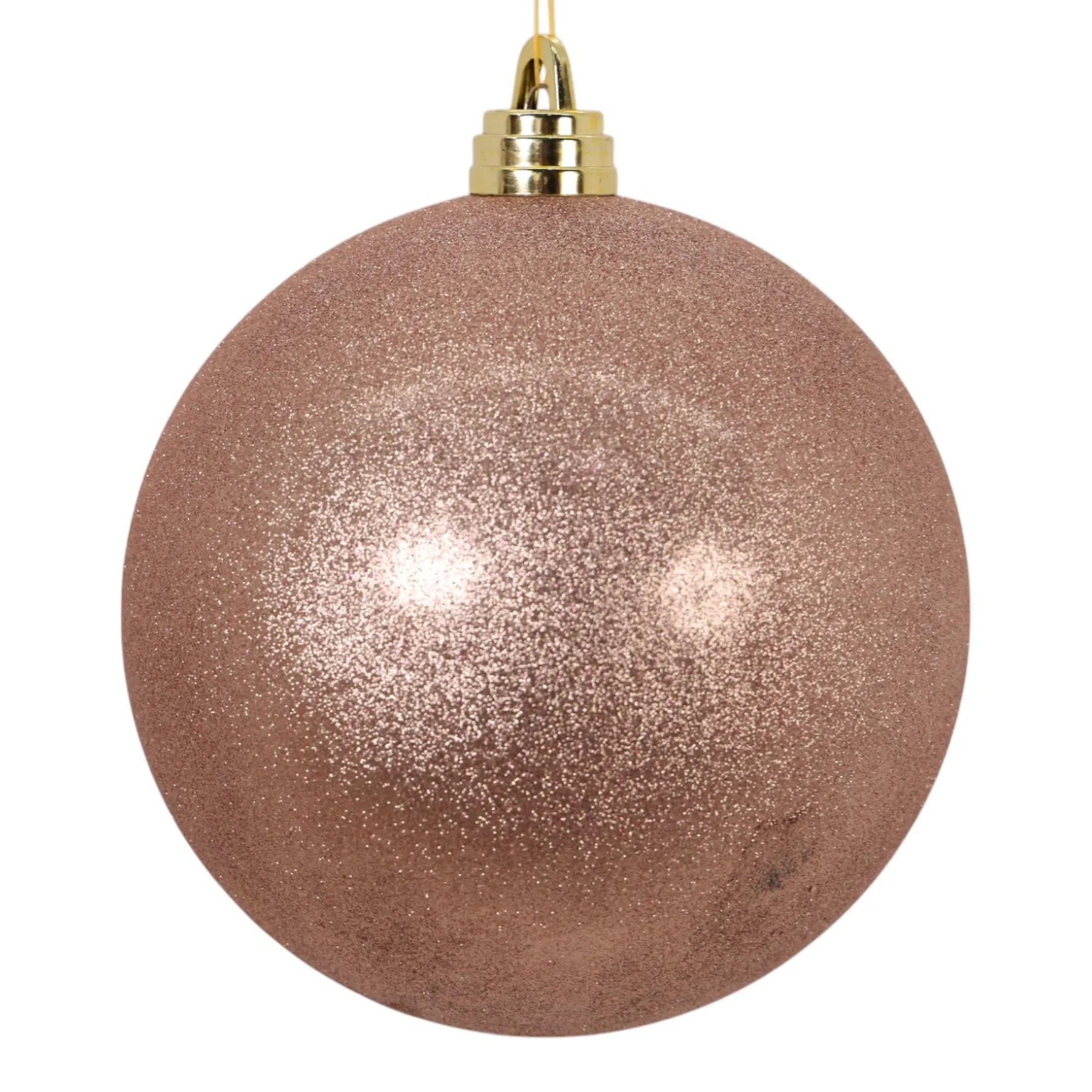 Elegante esfera en tono rose gold con acabado brillante con destellos metálicos es perfecto para crear ambientes sofisticados, ya sea en árboles navideños, escaparates o eventos especiales.