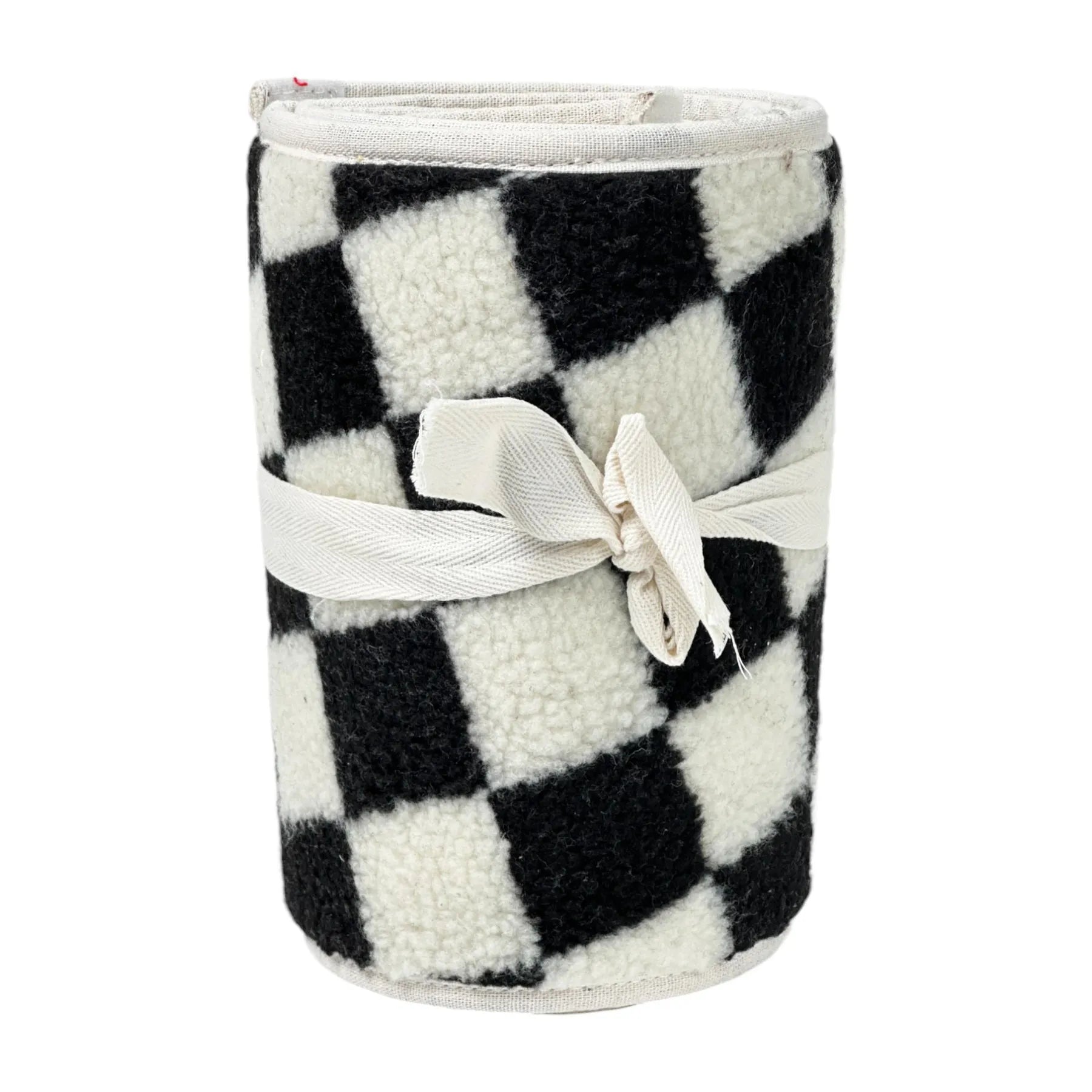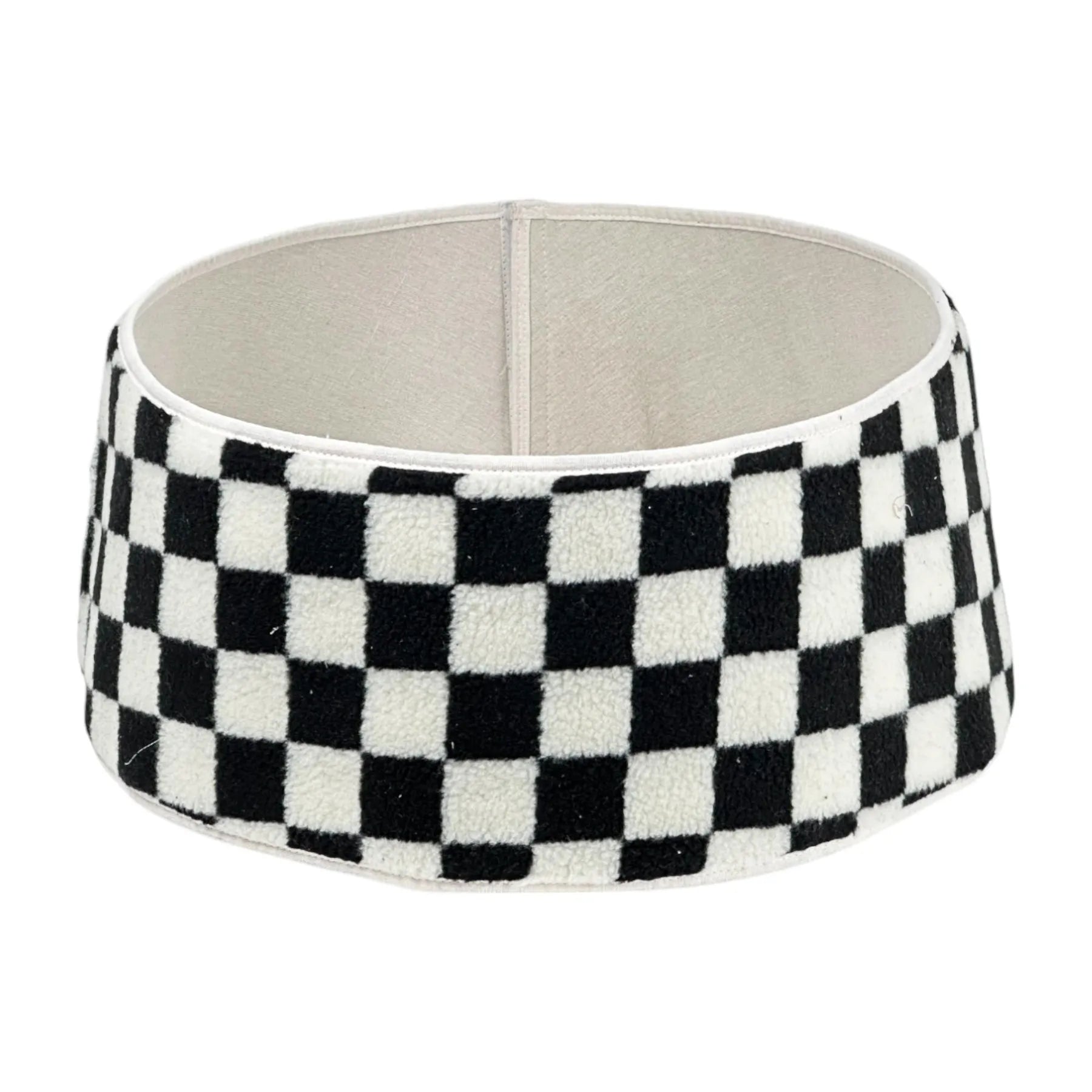 Aporta un toque moderno y llamativo a tu decoración navideña con esta original falda de árbol con patrón de tablero de ajedrez.