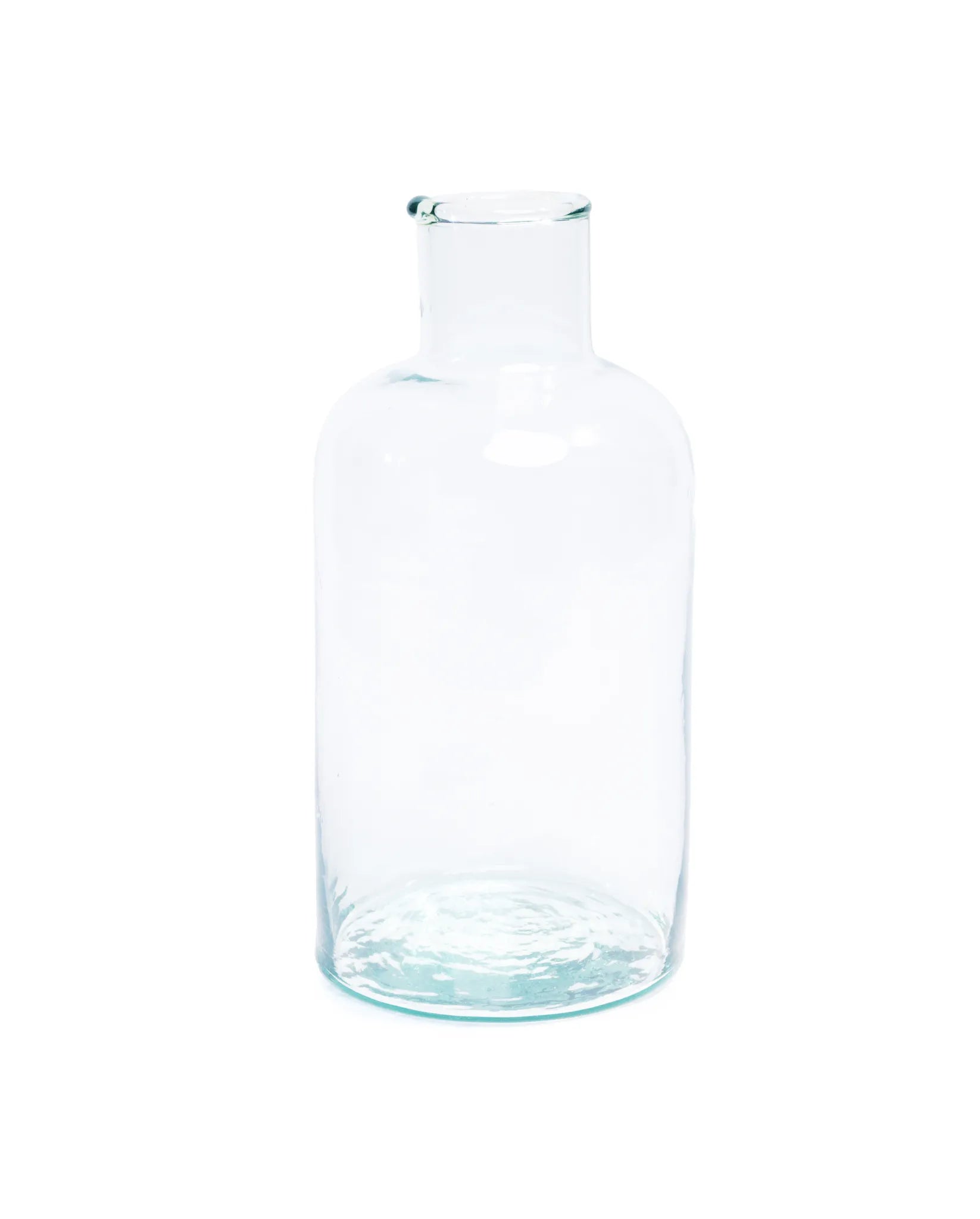 Elegante florero con forma de botella fabricado en vidrio transparente de alta calidad. Su diseño cilíndrico y acabado brillante lo convierten en una opción versátil para decorar cualquier espacio, desde hogares hasta eventos especiales. Ideal para flores naturales o secas, centros de mesa o ambientaciones minimalistas.