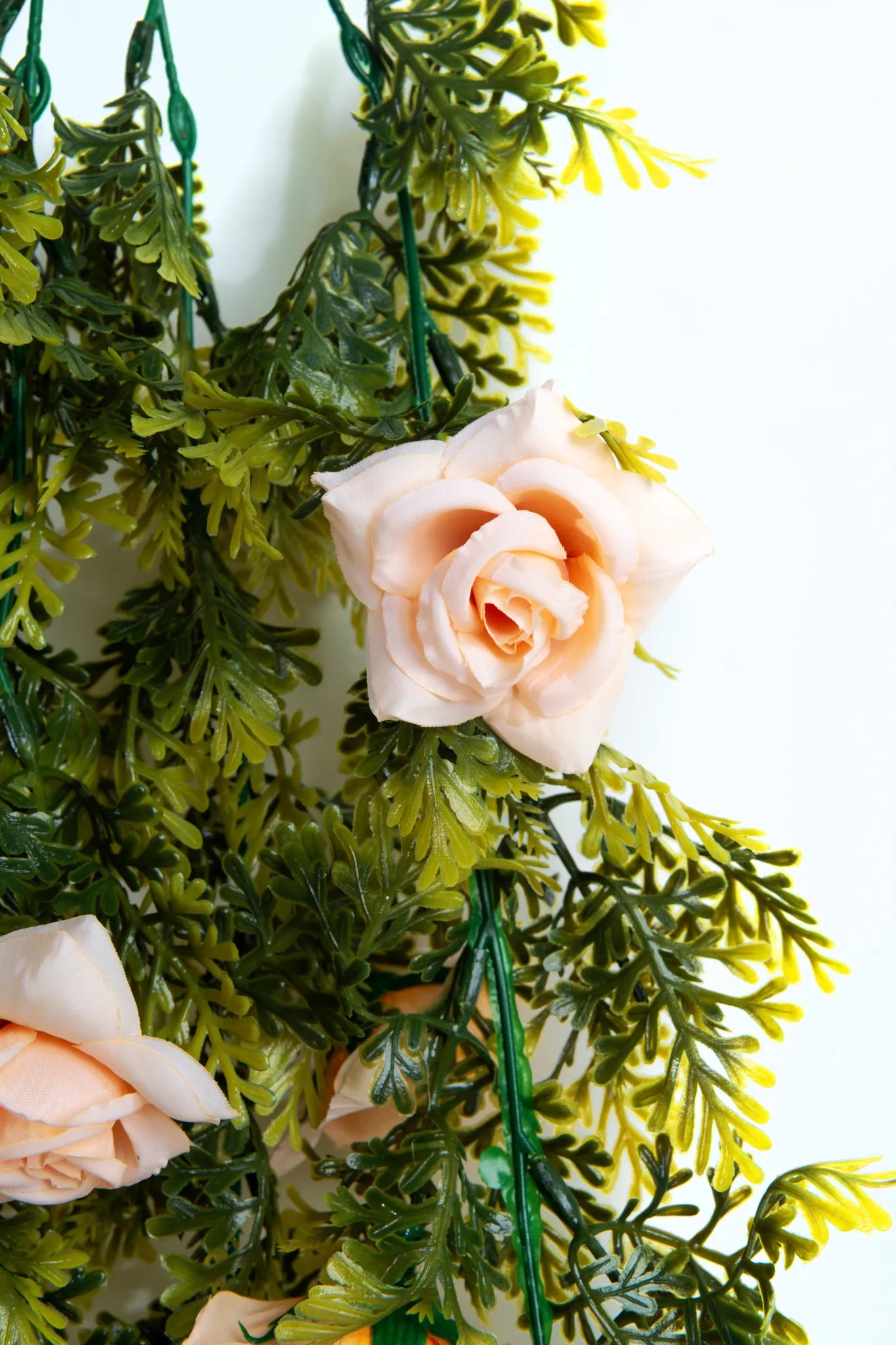 Añade un toque romántico y duradero con este follaje artificial de rosas color melón de 70 cm, ideal para decorar cualquier espacio sin necesidad de cuidados.