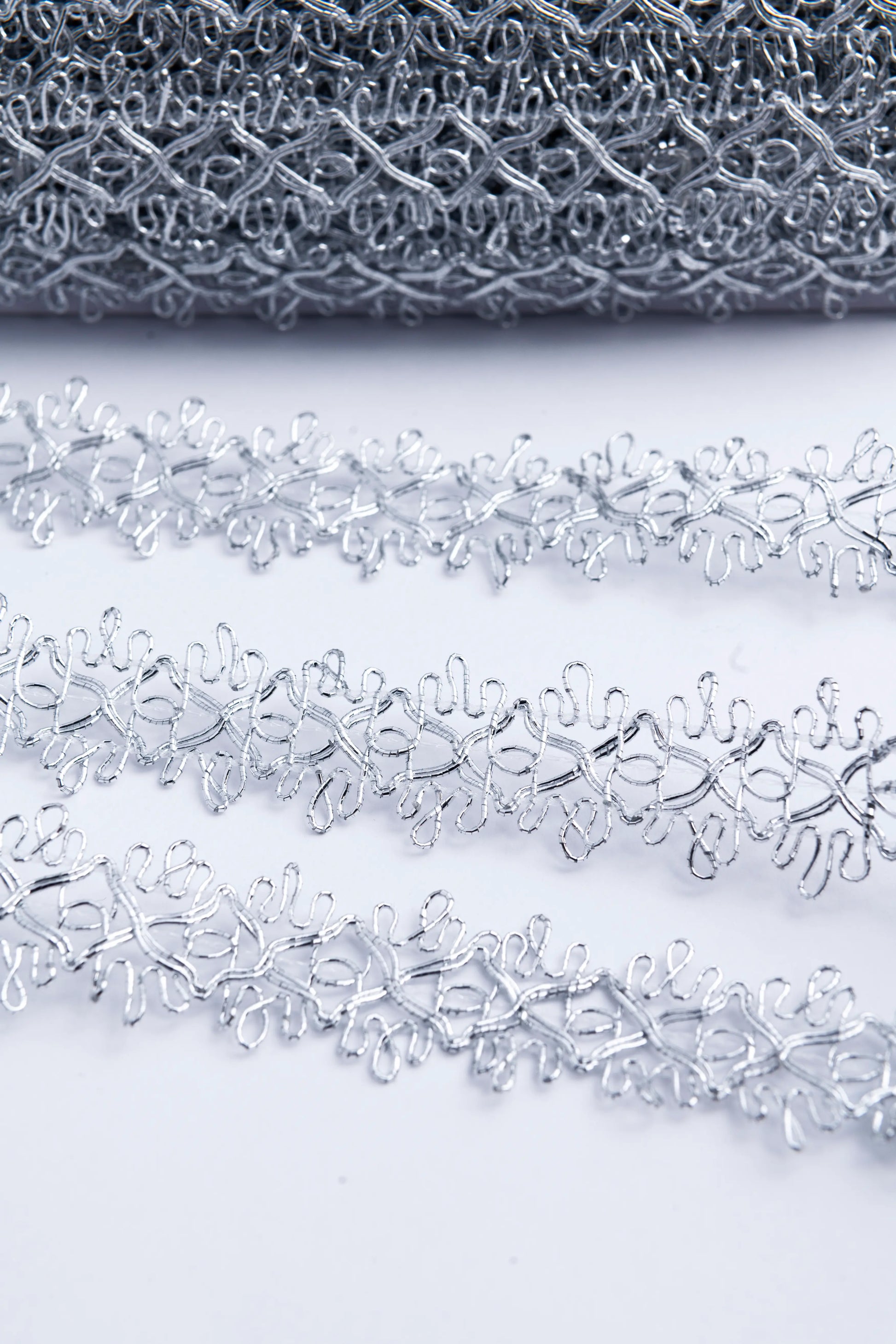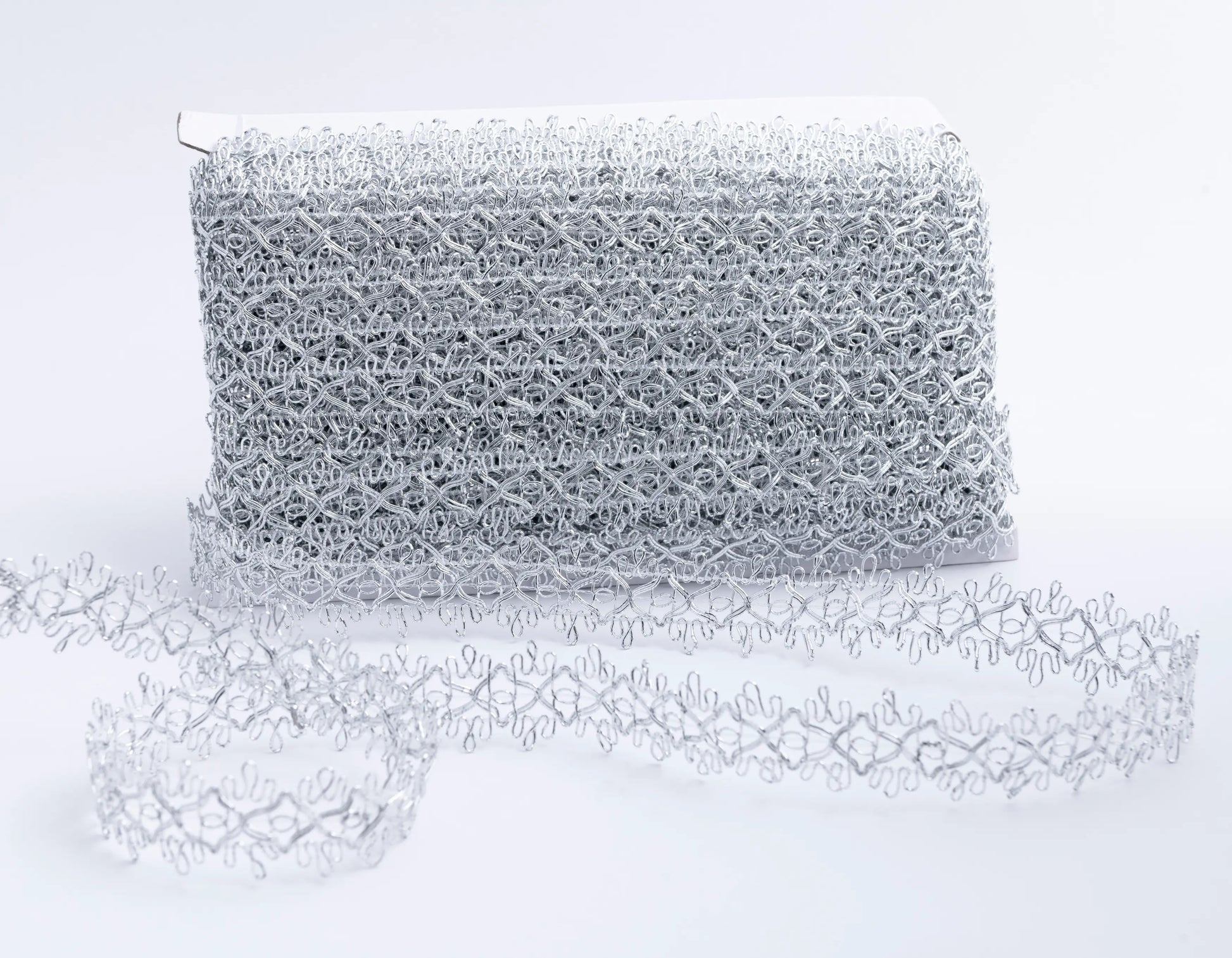 Añade un toque elegante y detallado a cualquier proyecto con este galón metalizado de 3 cm de ancho en tono plateado brillante. Con un patrón floral calado que aporta un efecto delicado, es ideal para quienes buscan acabados sofisticados con máxima versatilidad.