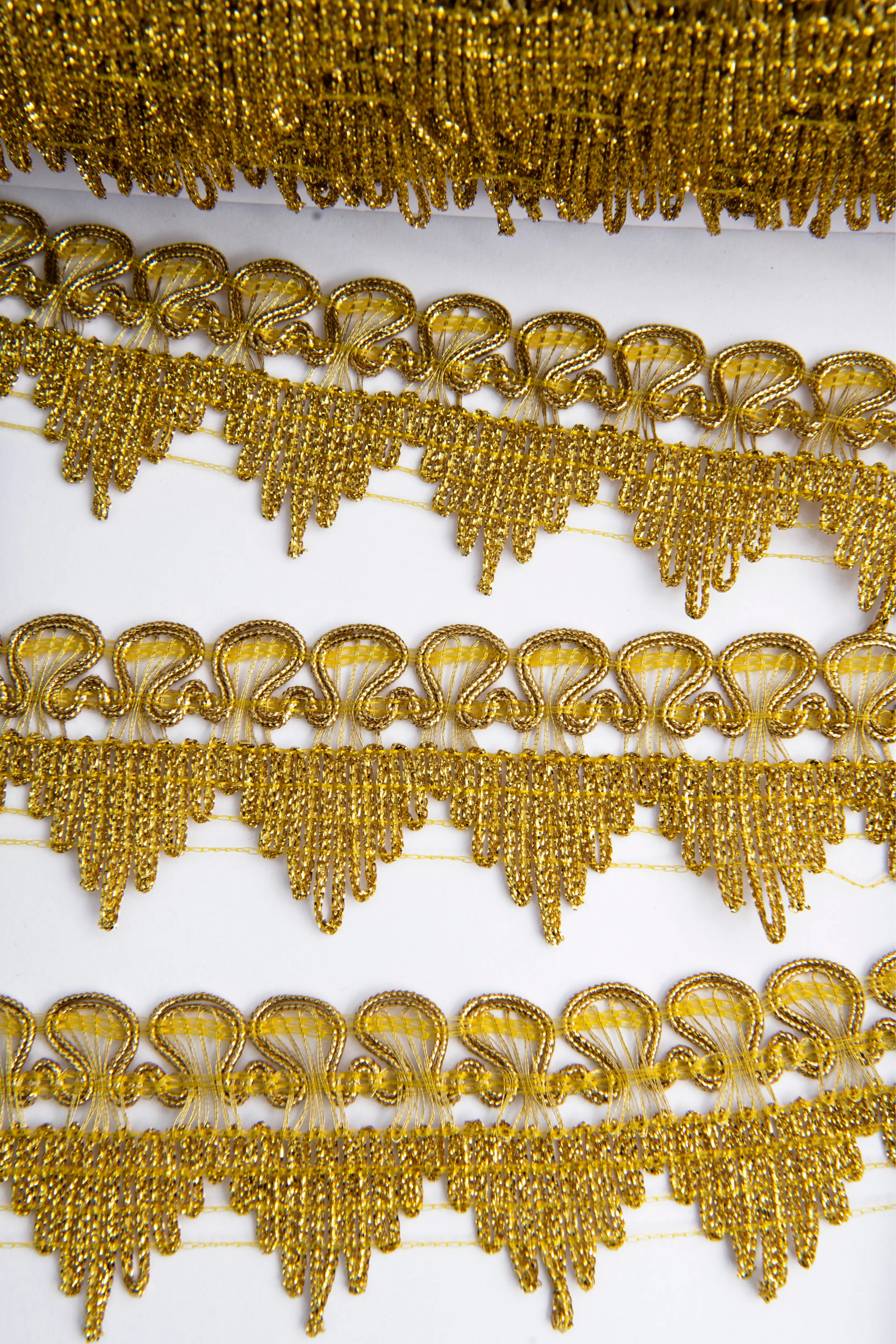 Este galón decorativo de 4.5 cm de ancho y 27 m de largo en color dorado metálico es una pieza elegante para todo tipo de aplicaciones. Su diseño trenzado, con acabado brillante y detalles en relieve, lo hace ideal para proyectos que requieren un toque lujoso y artesanal. Perfecto para moda, disfraces, decoración de eventos y manualidades de alto impacto.