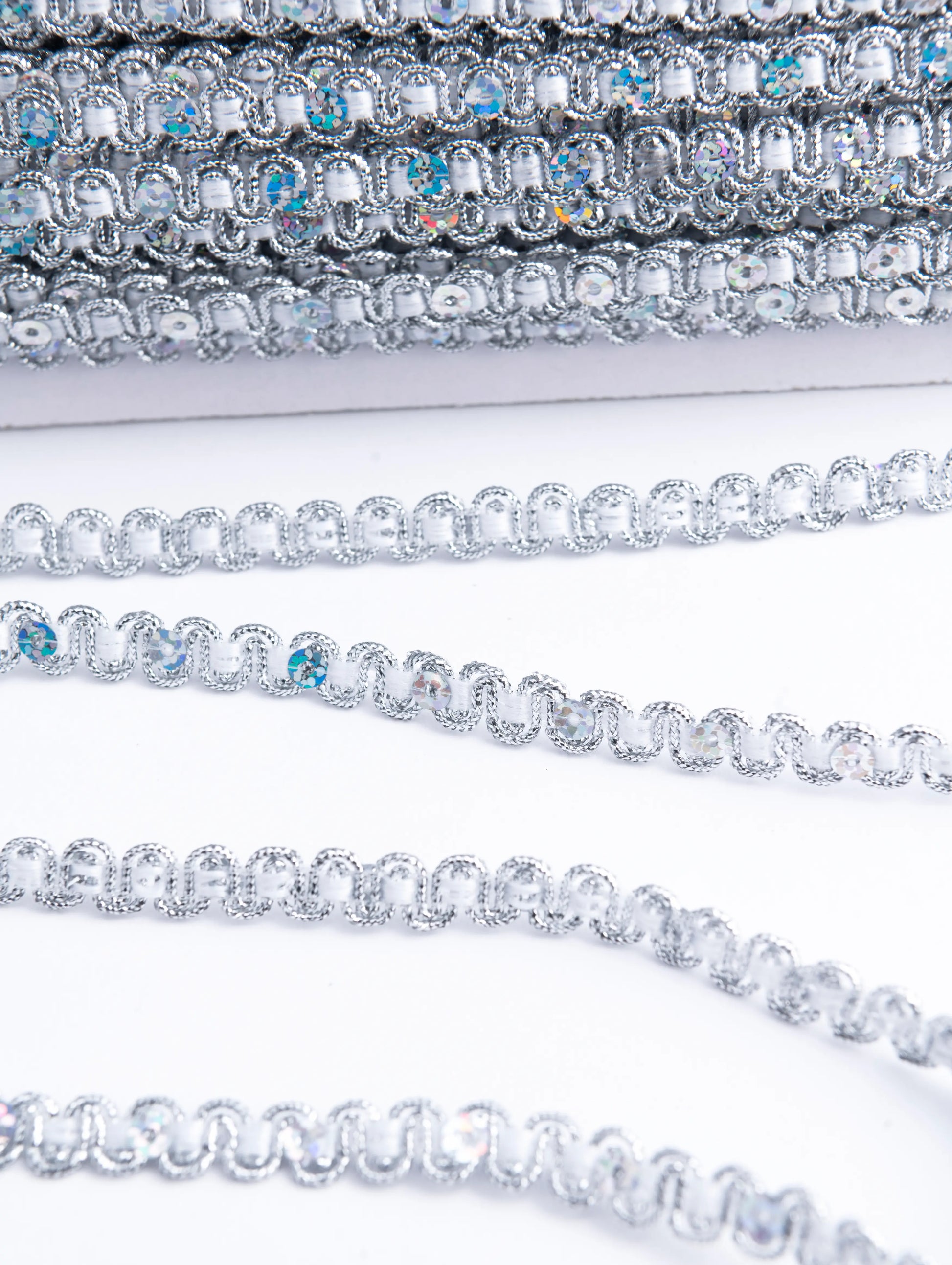 Galón Metalizado con Lentejuela Plateada 9 mm – Rollo de 27 m