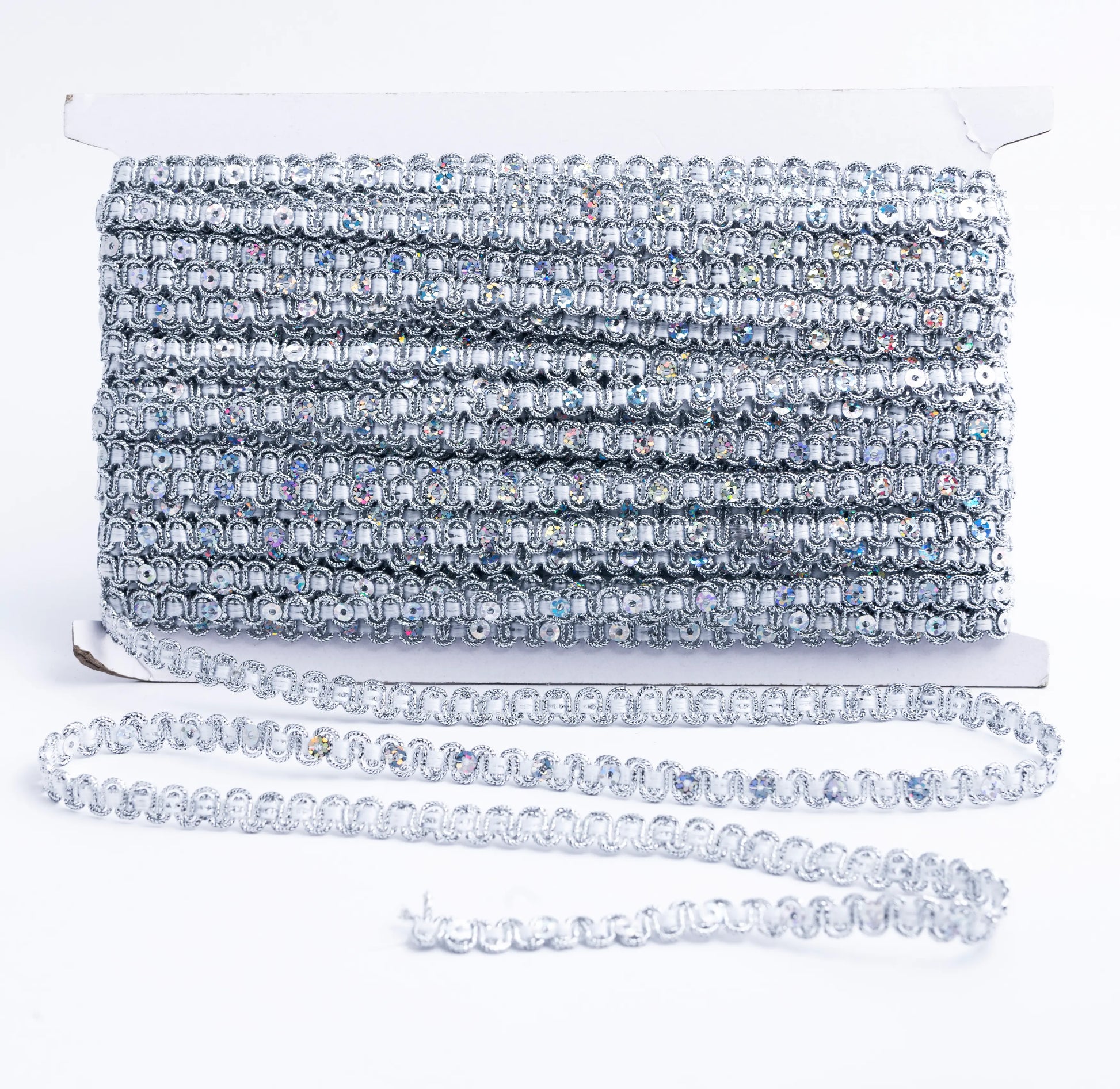• Diseño: galón texturizado tipo zigzag con lentejuelas cosidas.