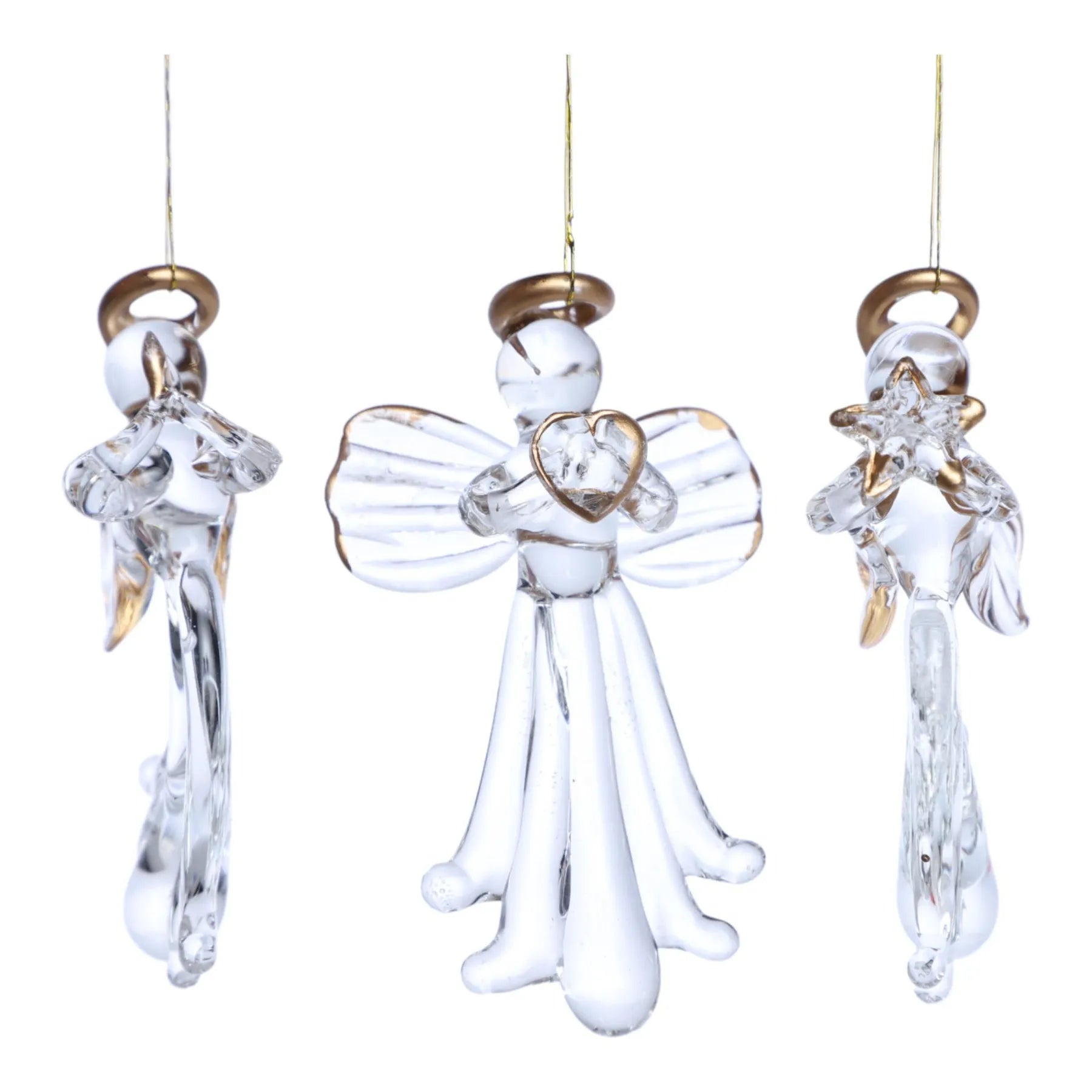 Juego de 3 Adornos Colgantes de Ángeles en Vidrio – 18 cm