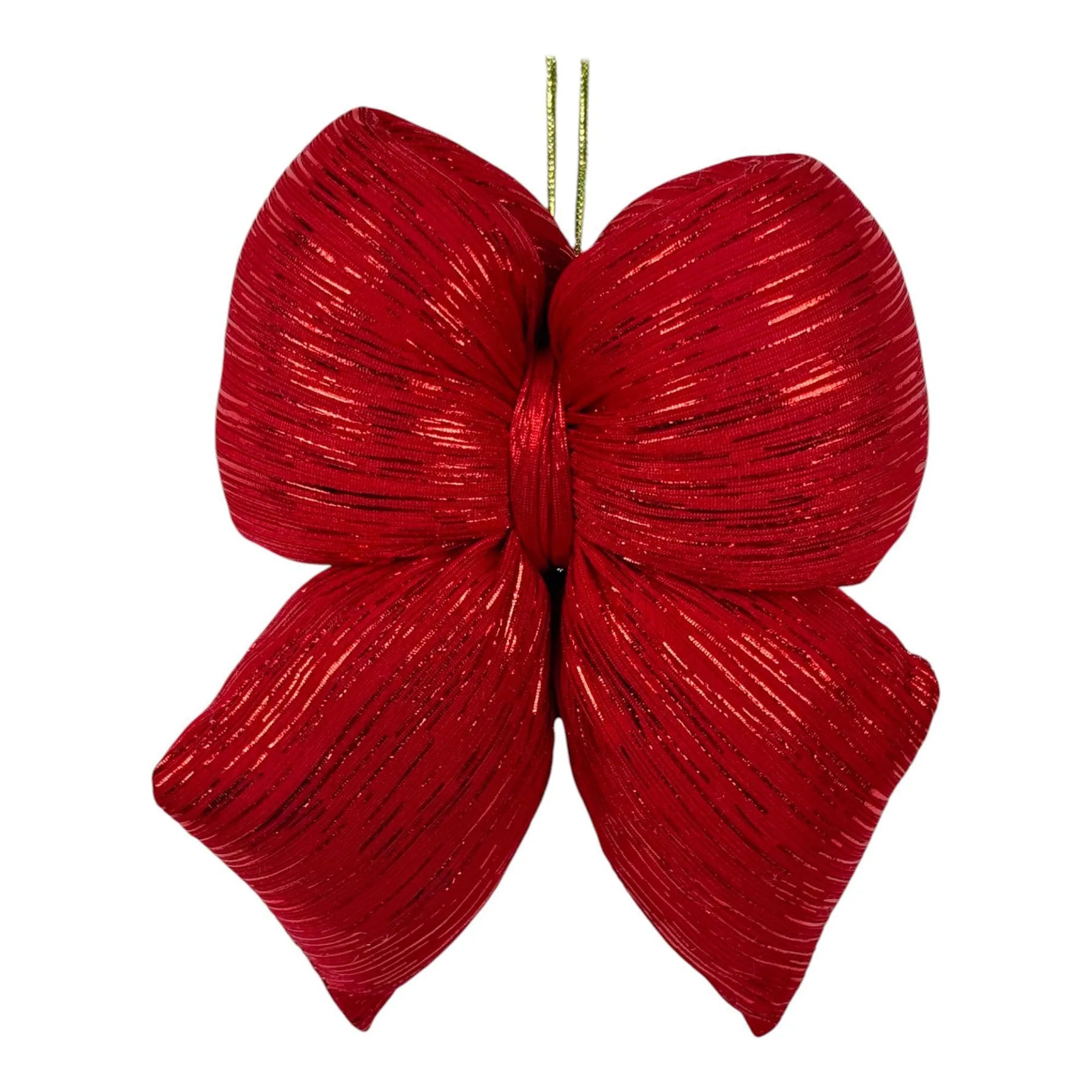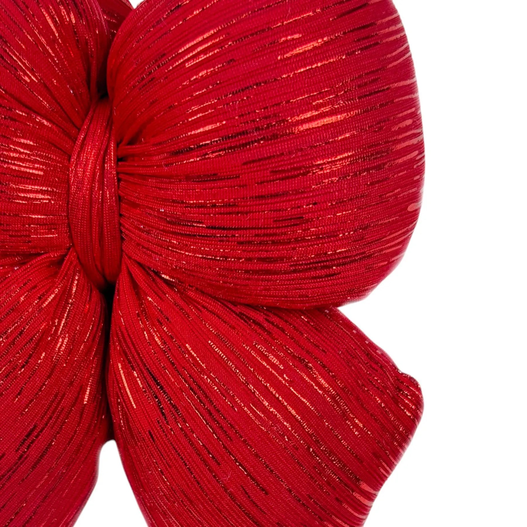 Moño rojo de textura brillante con diseño elegante lo convierte en un complemento perfecto para árboles, puertas, ventanas o arreglos festivos.