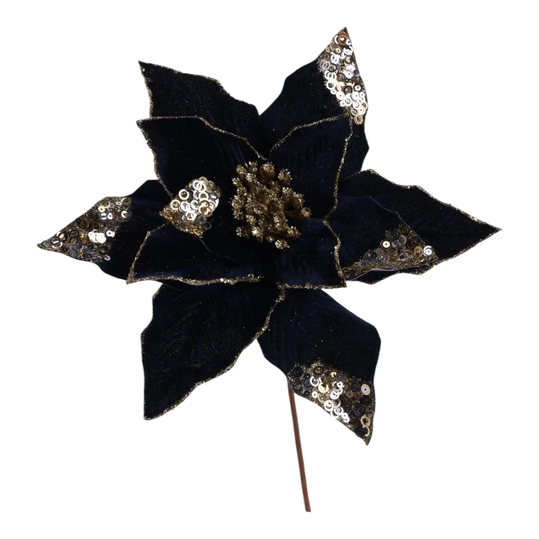 Flor Nochebuena Decorativa Azúl con detalles Dorados – 33 x 30 cm