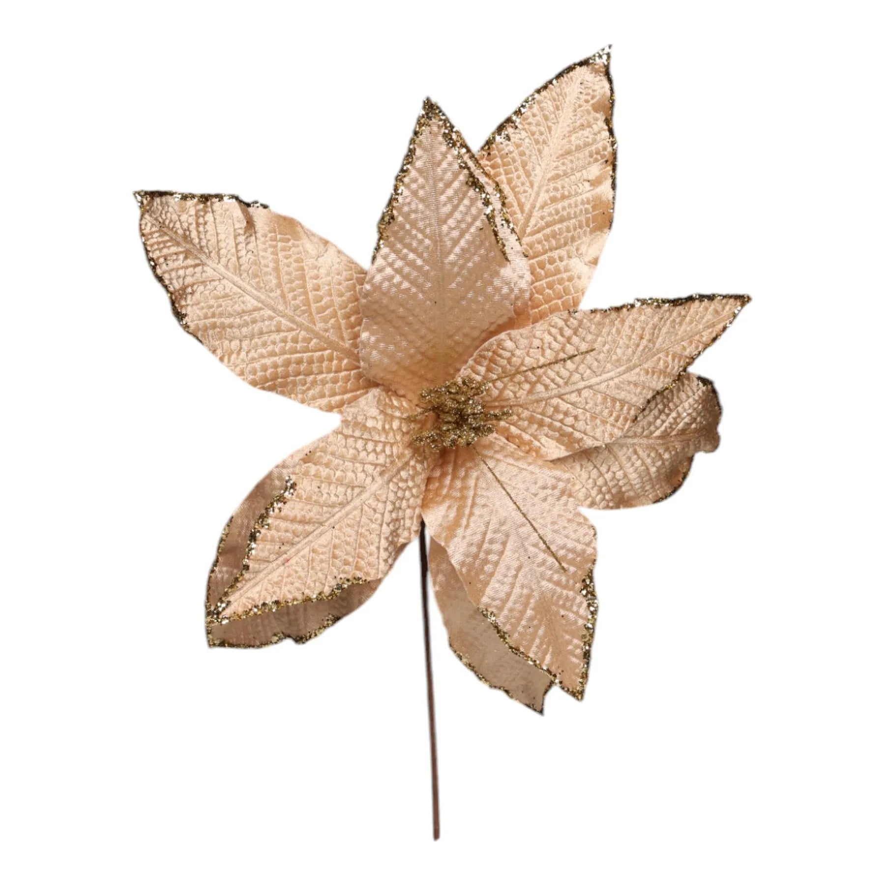 Noche Buena Decorativa Dorada y Glitter Dorado – 40 cm