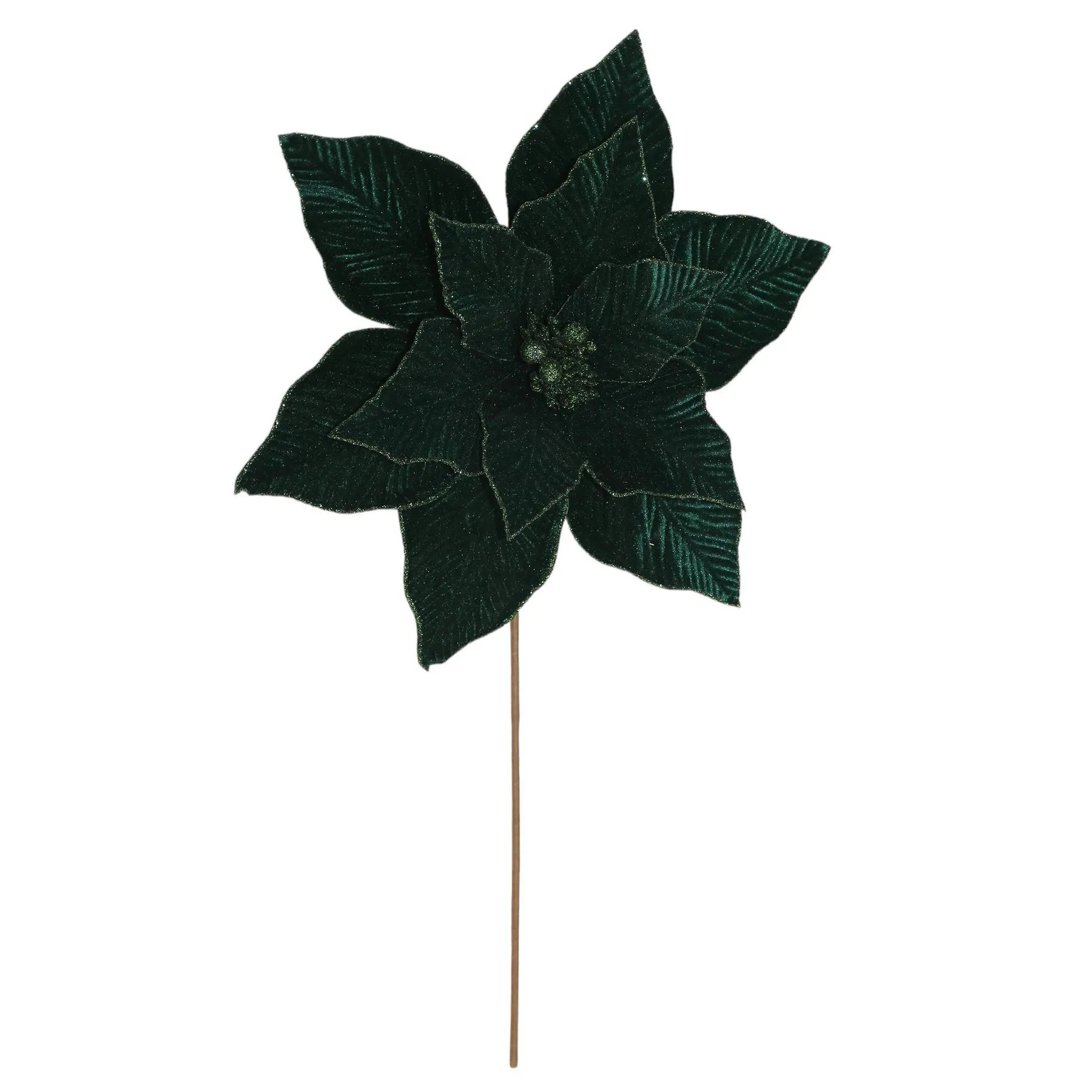 Nochebuena verde con detalles de escarcha. Su tono profundo y acabado brillante hacen que sea ideal para combinaciones sofisticadas, decoraciones minimalistas o arreglos temáticos en dorado, plata o blanco.
