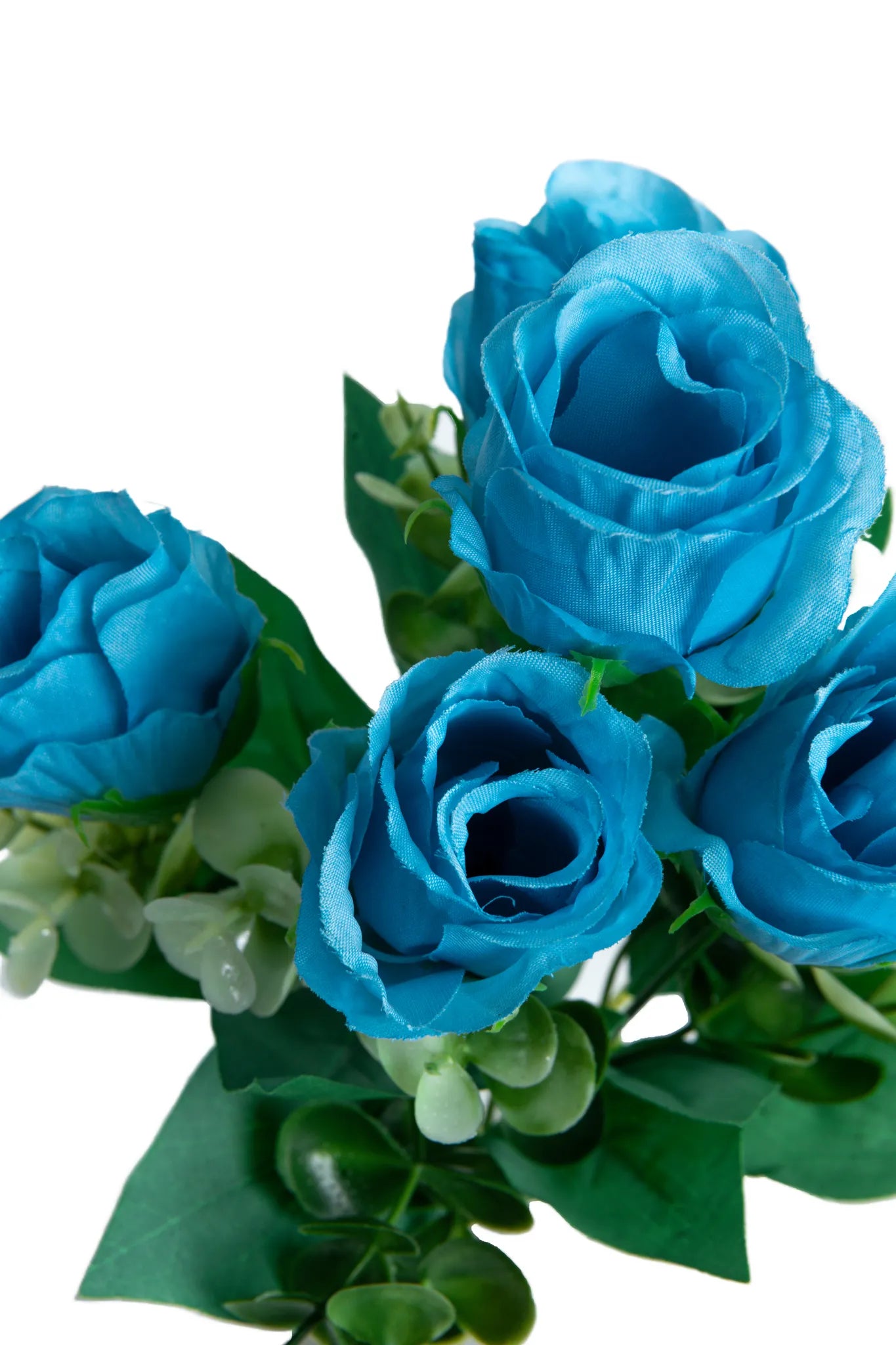 Este ramo de rosas artificiales en tono azul vibrante está compuesto por 5 cabezas con diseño de botón ondulado. Aporta color y elegancia a cualquier ambiente, ofreciendo una alternativa duradera y sin mantenimiento a las flores naturales. Perfecto para decoración de interiores, eventos y regalos florales.