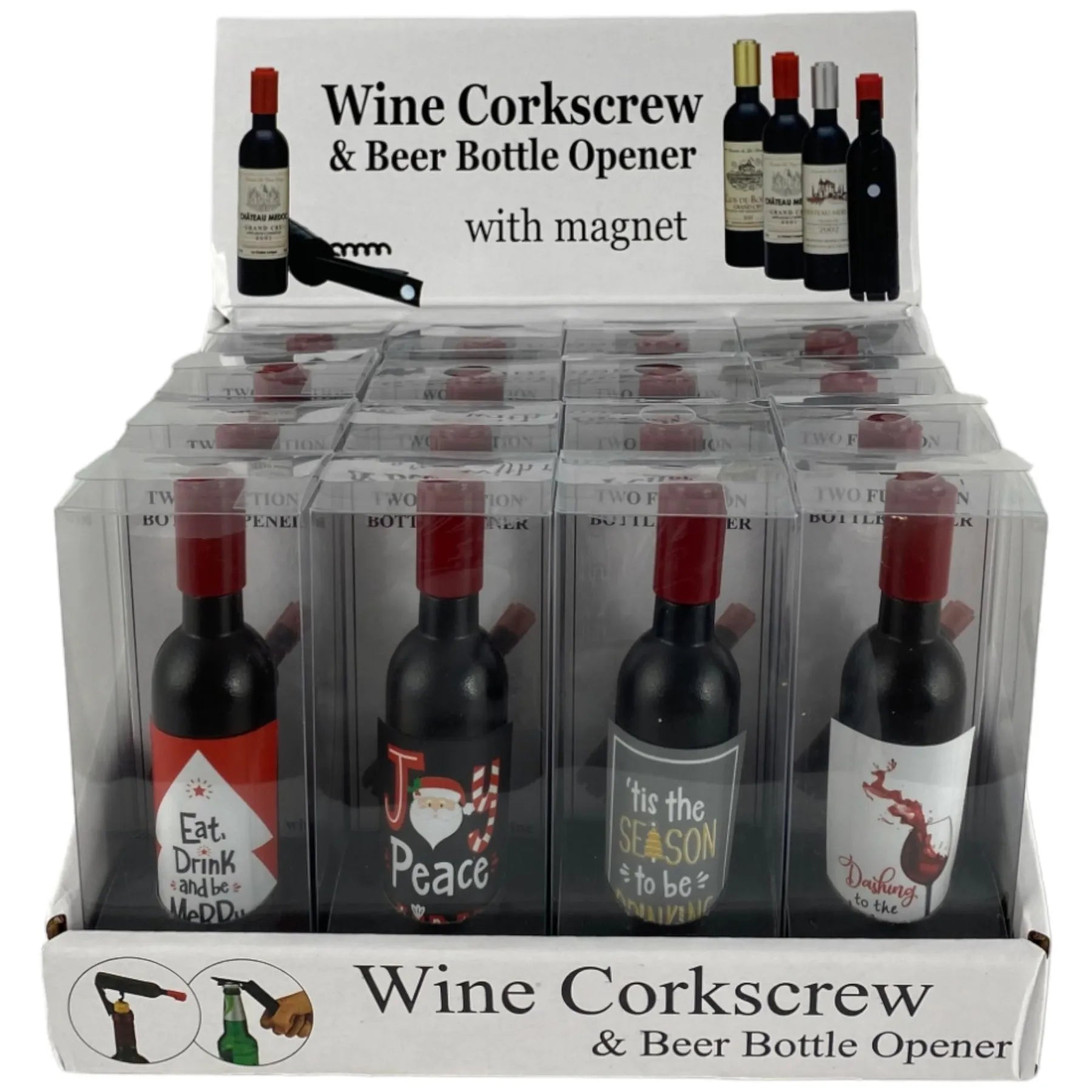 Práctico y decorativo sacacorchos con forma de botella de vino, ideal para abrir botellas de vino o cerveza.