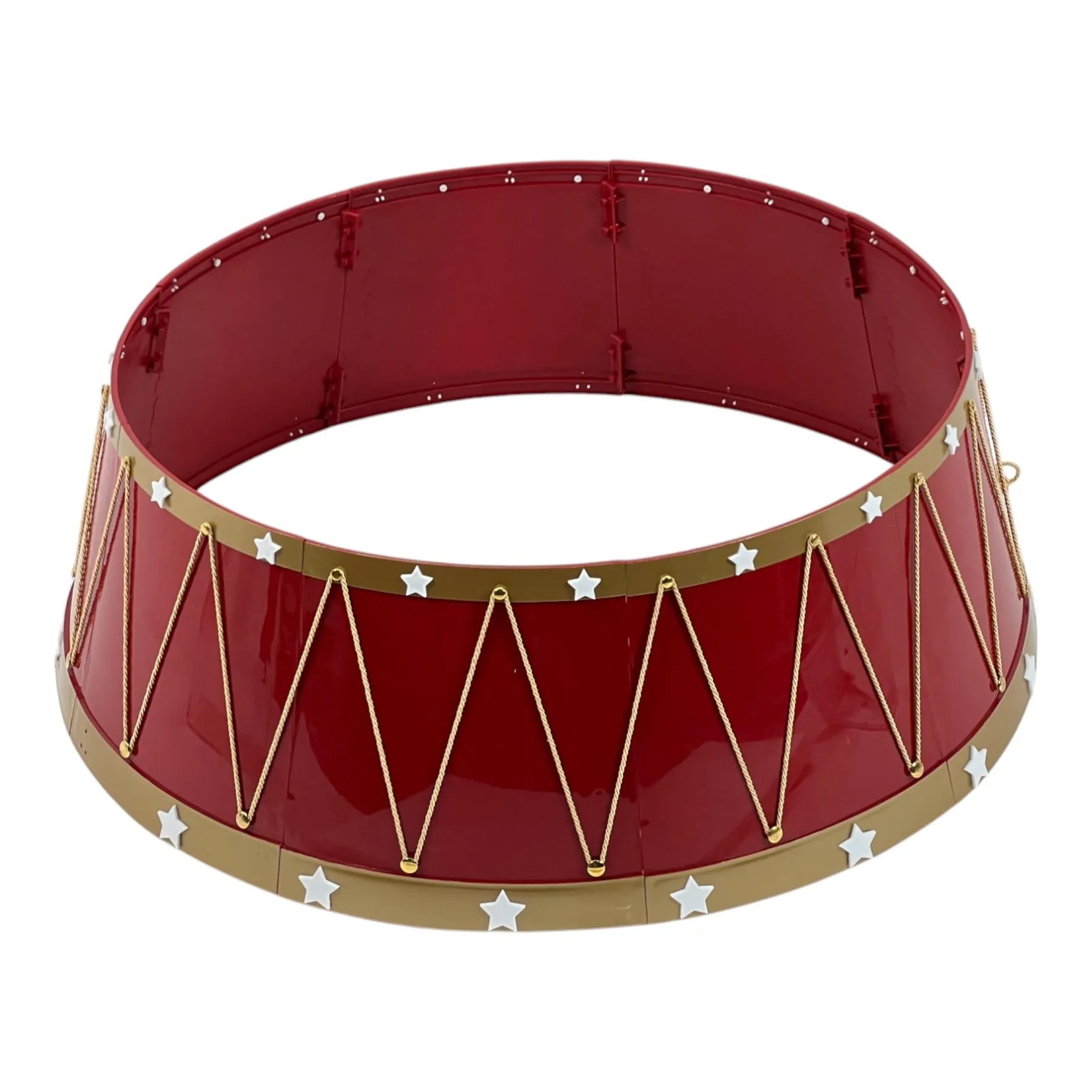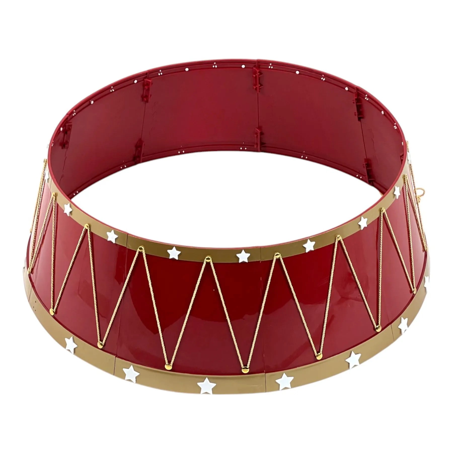 Agrega un toque festivo y decorativo a la base de tu árbol navideño con esta espectacular estructura en forma de tambor. Diseñada para cubrir el soporte del árbol y elevar el estilo de tu decoración.