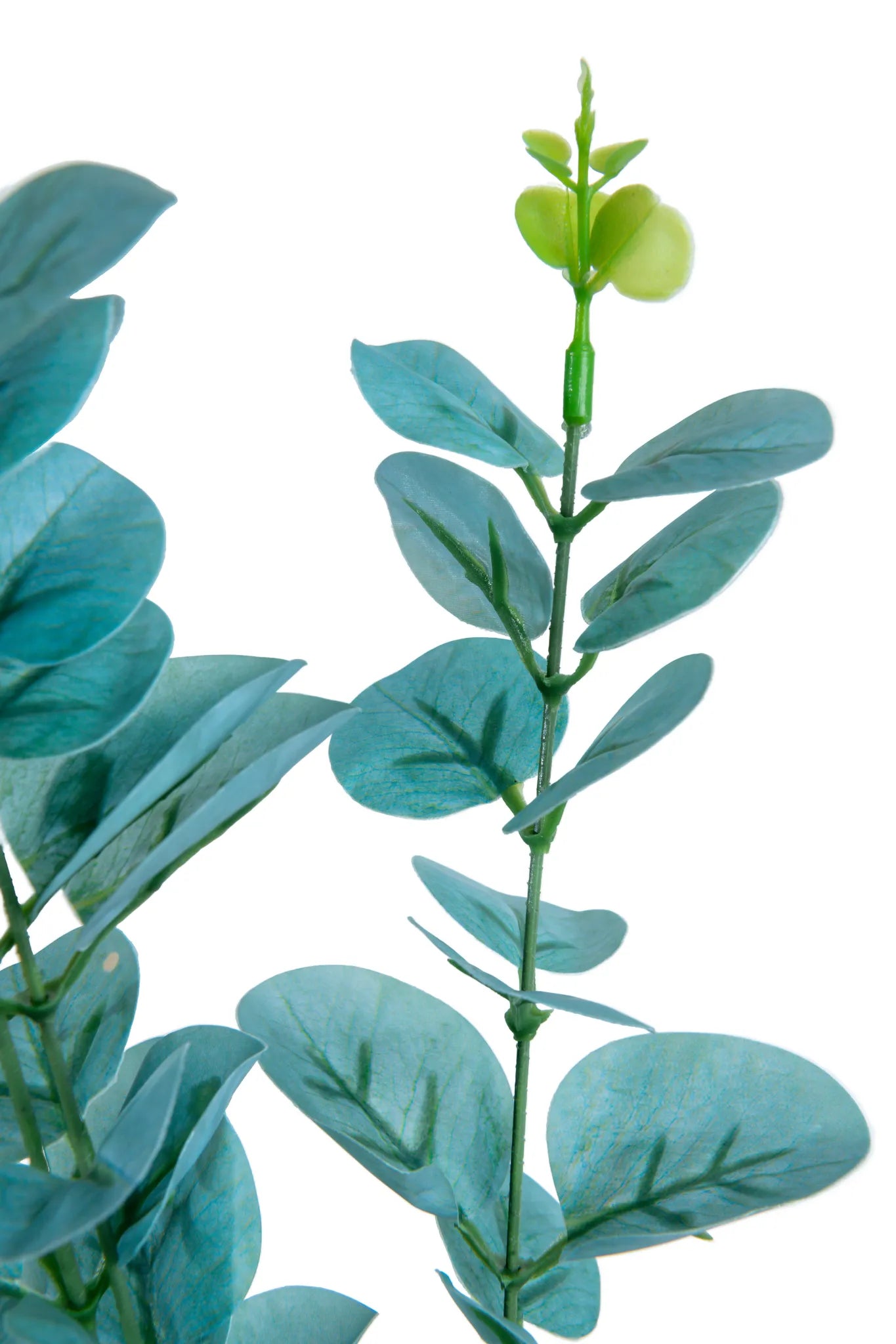 Incluye el clásico follaje de dólar eucalipto en tonos turquesa, cuidadosamente diseñado para entregar elegancia y naturalidad en un ramo sintético de 85 cm de longitud.